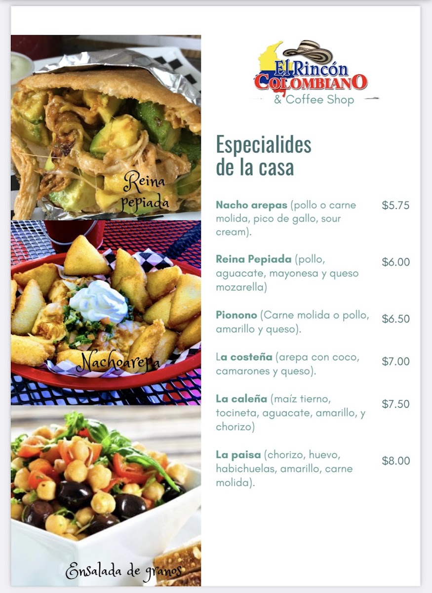 Rincón Colombiano Coffee Shop Menu